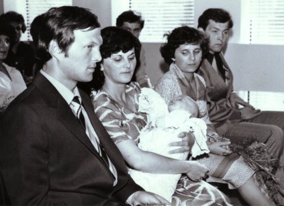 Toto som zase ja ked som bol maličký , ale je tu aj moja mamka , oco , krstná mama a krstný oco.